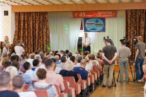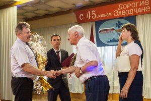 Председатель Верховного Совета вручил директору завода Василию Зубенко и главному механику Сергею Бабенко юбилейные награды «25 лет Верховному Совету ПМР», а особо отличившимся работникам – грамоты и благодарственные письма.