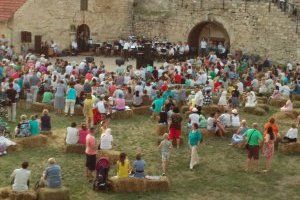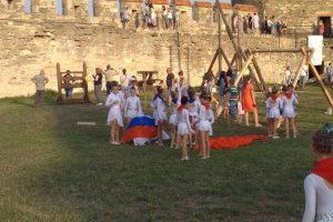 Вечером был дан бал со средневековыми танцами. Зрители расположились прямо на тюках с сеном, что придало празднику особую атмосферу. Завершил праздничную программу оркестр Главного штаба Вооруженных сил республики под управлением народного артиста ПМР Виталия Войнова. Песни, конечно, посвящены России – подпевали и взрослые, и дети.
