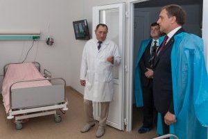 Спикер парламента, директор организации и главный врач РКБ перерезали красную ленточку, после чего была организована экскурсия по современному медучреждению. Корпус химиотерапии – это двухэтажное здание, построенное по самым последним технологиям, соответствующее всем российским нормам, в том числе сейсмичности. Палаты оснащены специальными осветительными приборами, работающими в разных режимах, индивидуальной системой подачи кислорода, а также кроватями, принимающими удобное для больного положение. Современное медучреждение в тестовом режиме работает с марта месяца. За это время удалось обследовать около 350 пациентов, что на 100 человек больше, чем за аналогичный период, когда лечение осуществлялось в старом здании. Как подчеркнул главный врач РКБ Владимир Пелин, наличие в республике специализированного отделения химиотерапии позволит повысить качество диагностики и терапии больных с онкологией. «Высокоспециализированная медицинская помощь будет оказываться в условиях, которые соответствуют всем современным стандартам. Улучшены бытовые условия (имеется лифт, который поднимает пациентов стоя, лежа и сидя), отделение оснащено аппаратом для маммографии, имеется специализированный кабинет УЗИ, а также кабинет, где делается пункция головного мозга, чтобы определить наличие или отсутствие атипичных клеток», – подчеркнул Владимир Пелин.