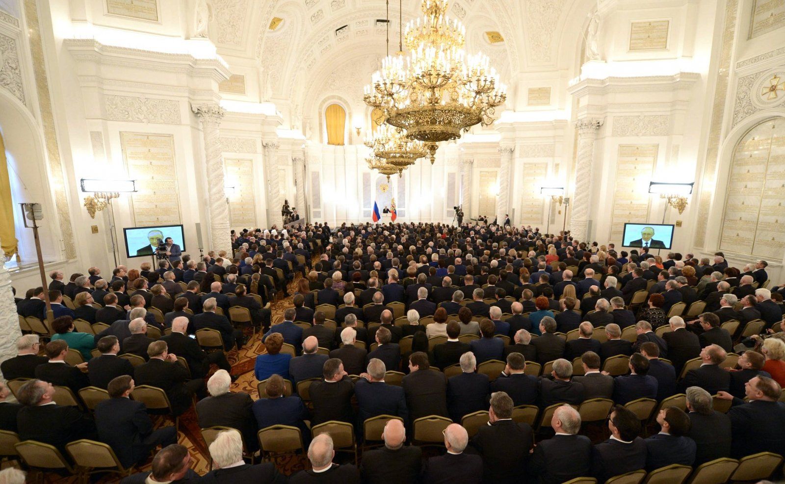 Владимир Путин обратился к Федеральному Собранию с ежегодным Посланием. Оглашение Послания по традиции состоялось в Георгиевском зале Кремля в присутствии свыше 1000 приглашённых. На оглашении Послания присутствовали члены Совета Федерации, депутаты Государственной Думы, члены Правительства, руководители Конституционного и Верховного судов, губернаторский корпус, председатели законодательных собраний субъектов Федерации, главы традиционных конфессий, общественные деятели, в том числе главы общественных палат регионов, руководители крупнейших средств массовой информации.