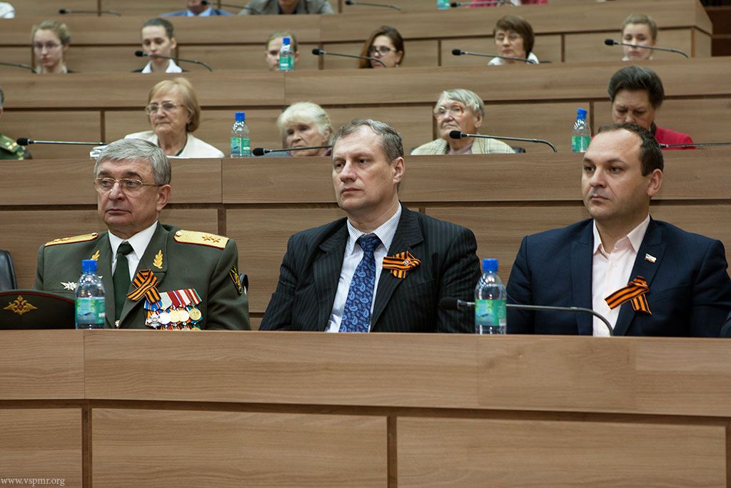 О сохранении исторических и духовных ценностей, уроках недавней истории, недопущении ее «переписывания», о воспитании любви к Родине у подрастающего поколения, заботе о фронтовиках говорили и другие докладчики: председатель РОД «Приднестровская община», доверенное лицо Владимира Путина, генерал-полковник Николай Сердцев; президент объединения соотечественников Евгений Бакланов (г. Киев); председатель ОО «Соотечественники Гагаузии» Александр Кывыржик (г. Комрат); кандидат исторических наук, преподаватель ПГУ Николай Бабилунга; представитель «Русской общины» г. Кишинева Алла Сувак.