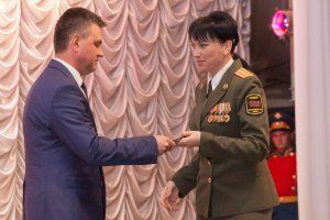 Лучшим представителям Вооруженных сил Приднестровской Молдавской Республики Председатель Верховного Совета вручил юбилейную награду – медаль «25 лет Верховному Совету». В числе награжденных – министр обороны ПМР Руслан Паулеско.