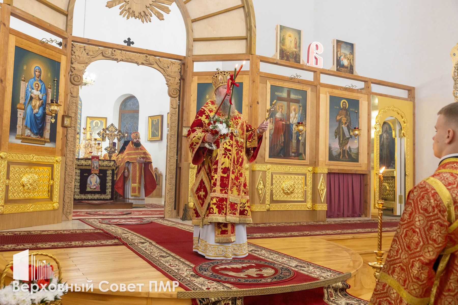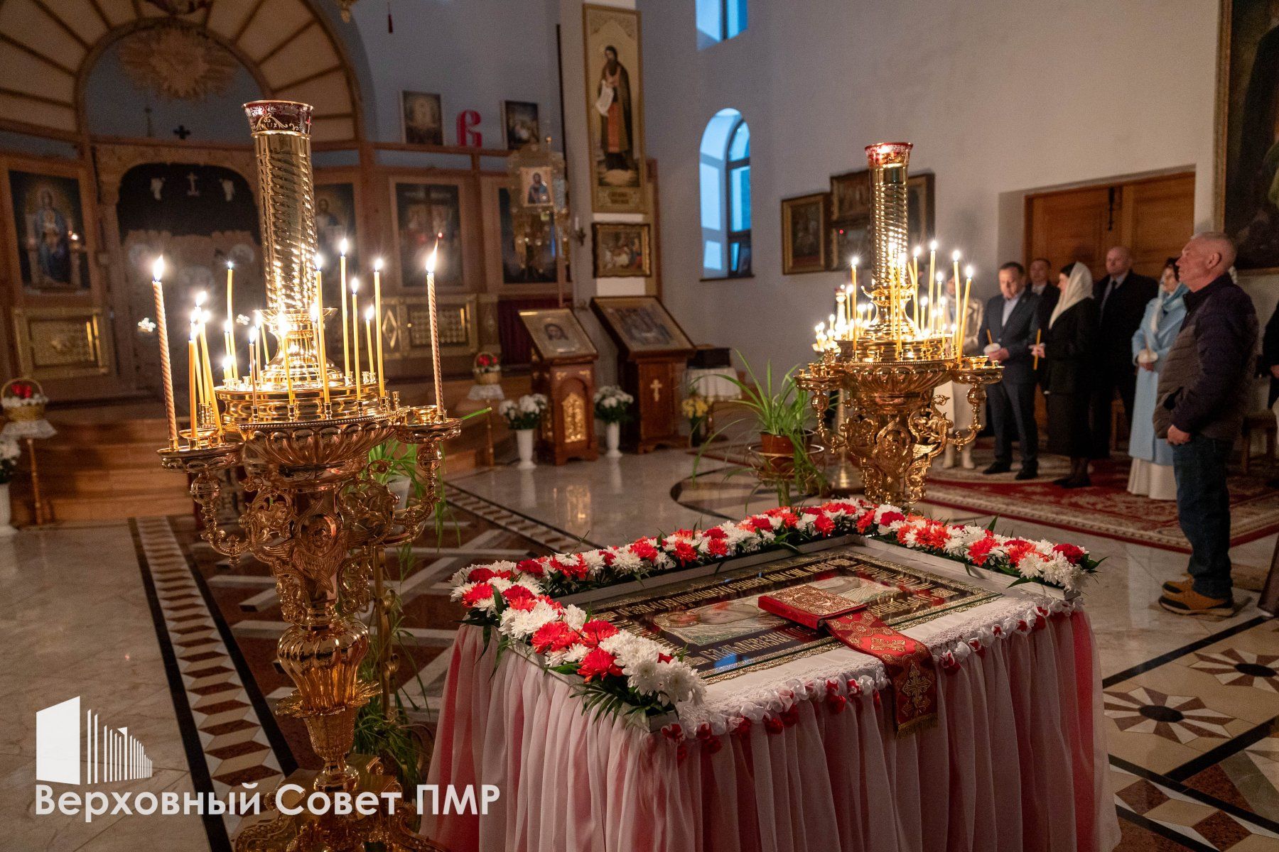 От имени Верховного Совета ПМР и от себя лично спикер парламента Татьяна Залевская поздравила со Светлым Христовым Воскресением архиепископа Савву и священнослужителей Тираспольско-Дубоссарской епархии. Спикер передала белые розы и приветственный адрес.