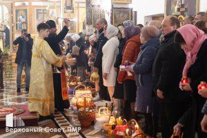 Праздник праздников и Торжество торжеств. Православные верующие празднуют Светлое Христово Воскресение. В ночь на 12 апреля пасхальные богослужения прошли по всей республике. В праздничной службе в столичном храме Воздвижения Креста Господня приняли участие Председатель Верховного Совета ПМР Татьяна Залевская, Председатель Правительства Александр Розенберг с супругой и депутат Верховного Совета по округу №30 «Кировский» Григорий Дьяченко с семьей.