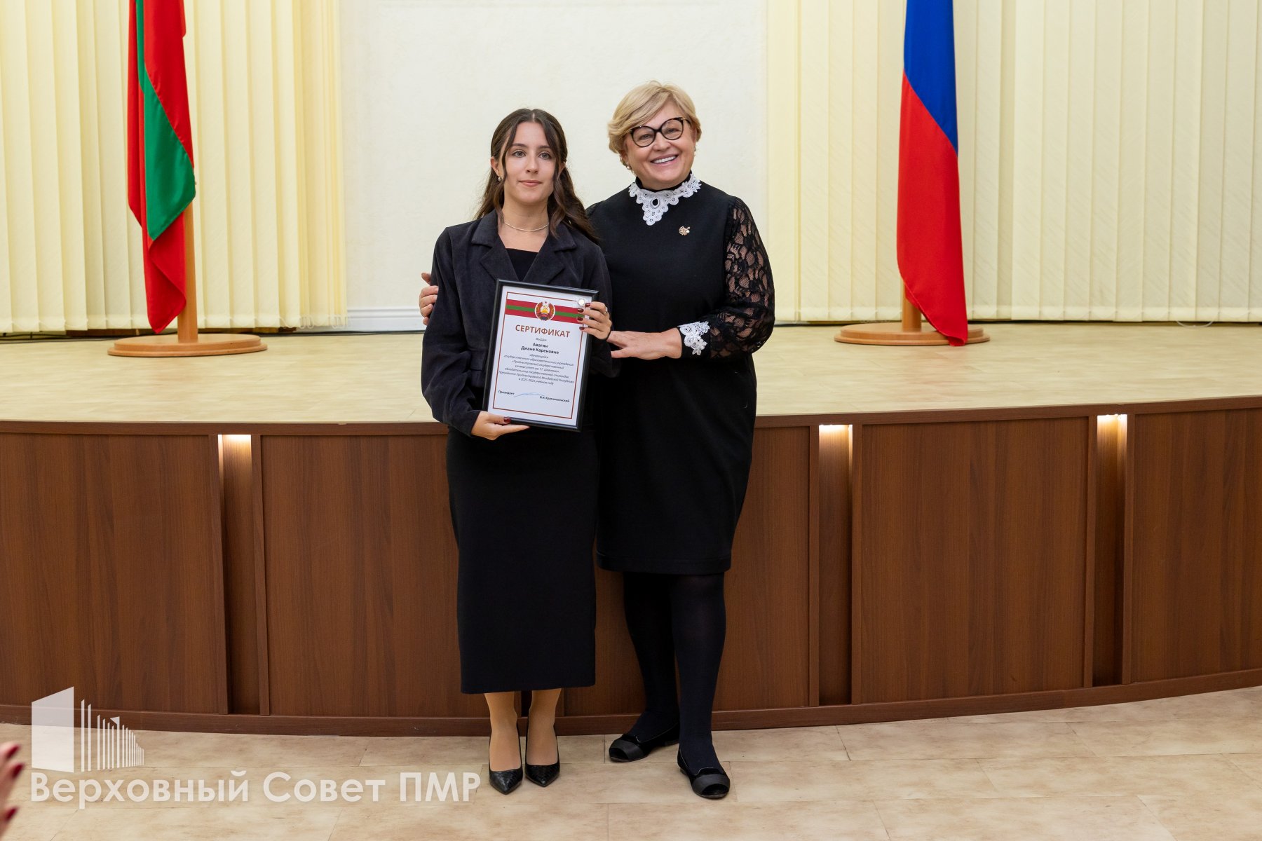 В этом году президентским стипендиатом стал 101 человек. Сертификаты вручили в торжественной обстановке в столичном Дворце Республики. Поздравить отличившихся пришли заместитель Председателя Верховного Совета ПМР Галина Антюфеева и представители Правительства.
