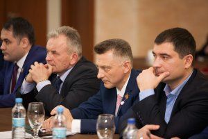 Находящиеся с визитом в Приднестровье депутаты нижней палаты российского парламента Сергей Кузин, Владимир Таскаев, Анатолий Сикорский, а также заместитель председателя правления фонда «Русский мир» Сергей Богданов приняли участие во встрече парламентариев и общественников, которая прошла под девизом «Межпарламентский диалог на пути Евразийской интеграции».