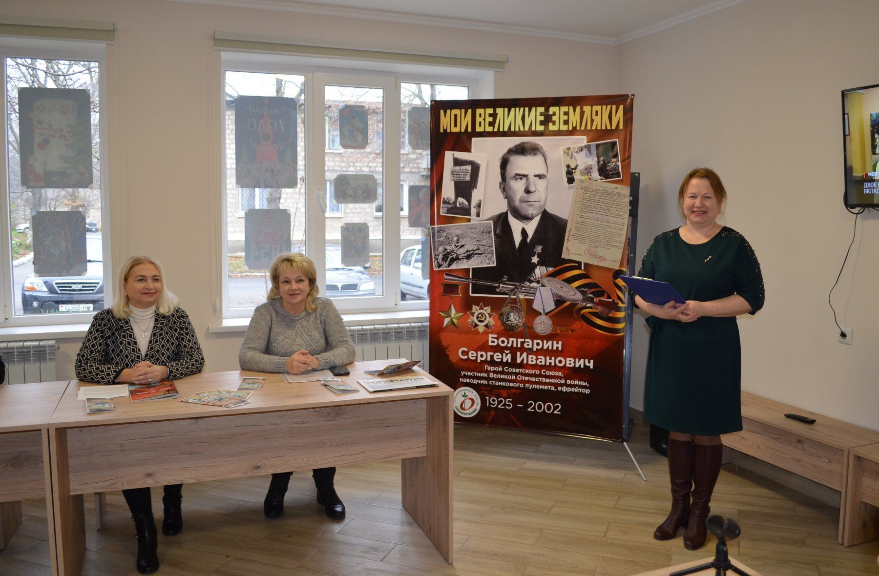 По инициативе Республиканской партии «Обновление» Слободзейский музей получил в подарок памятный баннер с изображением героя и экземпляр брошюры «Мои великие земляки». Личный пример Сергея Болгарина, рассказы семьи героя и выступление парламентария еще раз убеждают нас: связь с собственной историей – это фундамент, на котором строится будущее.
