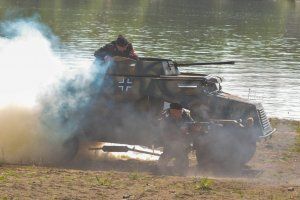 На столичном пляже 3 мая прошла реконструкция боя времён Великой Отечественной войны. В ней участвовало более 70 человек – военнослужащие ОГРВ, участники движения «Наследники Побед», воспитанники Тираспольского суворовского военного училища. Военный праздник, который был посвящен сразу двум датам – Дню Победы и 75-й годовщине освобождения Тирасполя – посетили Президент Вадим Красносельский, председатель Верховного Совета Александр Коршунов, представители министерств и ведомств, общественных организаций, жители и гости города.