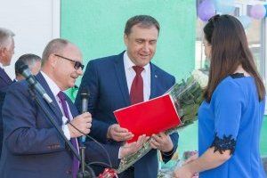 Бурными аплодисментами ребята встретили известие о подарке Александра Щербы. Это новое оборудование для трактора, используемого в процессе обучения на уроках технологии. Грамотой Верховного Совета была награждена учитель школы, классный руководитель нынешних выпускников Кристина Перевознюк.