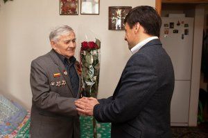 В преддверии Первомая парламентарий Вадим Левицкий с цветами и подарками направился в гости к участникам второй мировой войны, проживающих на его 41-м избирательном округе «Краснодонский». Первый адрес – ул. Краснодонская, 50. Здесь живет инвалид ВОВ Илья Емельянович Бородач. В будущем году он отметит юбилейный день рождения – 90-летие.