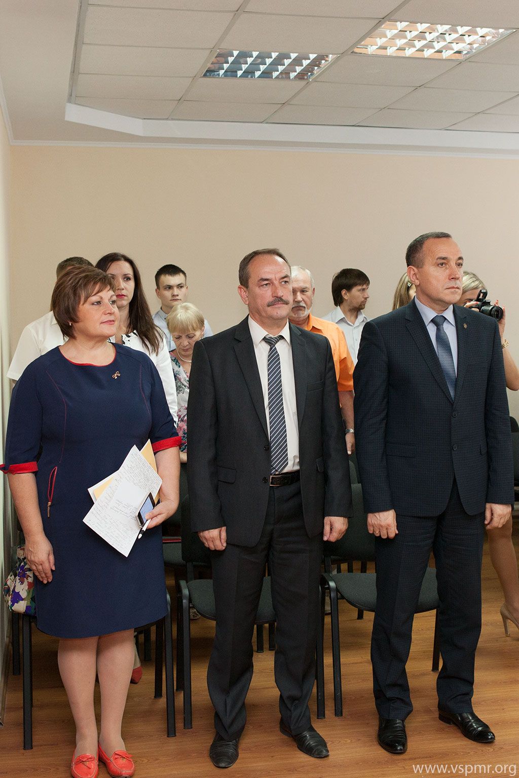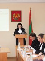Галина Антюфеева передала Марии Мельник приветственный адрес Председателя Верховного Совета Михаила Бурлы, в котором высоко оценена значимость и качество работы Арбитражного суда республики.