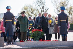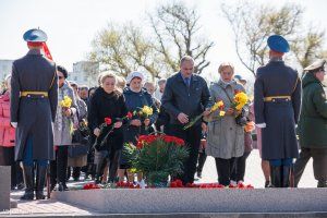 Сегодня на столичном Мемориале Славы к Вечному огню и могилам, где захоронены советские солдаты – освободители Тирасполя и павшие на фронтах ВОВ уроженцы Приднестровья, возложили цветы руководство республики и представители общественных организаций.