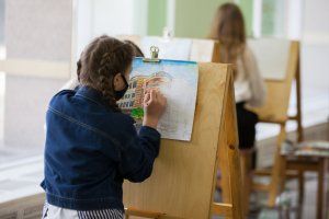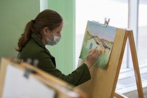 «Я рисую символ Приднестровской Молдавской Республики: виноград на заднем фоне и мост в буйстве света. Картину пишу акварелью. Михаила Ларионова знают все, это знаменитый человек, который прославился своим творчеством. В своей цветовой гамме я использую более спокойные оттенки. Не использую ярко-красные, ядовитые, неоновые. Главное для юного художника – это не бояться рисовать. Ларионов рисовал смело, несмотря на какие-то мелкие недоделки», – рассказала ученица детской художественной школы им. А.Ф. Фойницкого Екатерина Халюк.