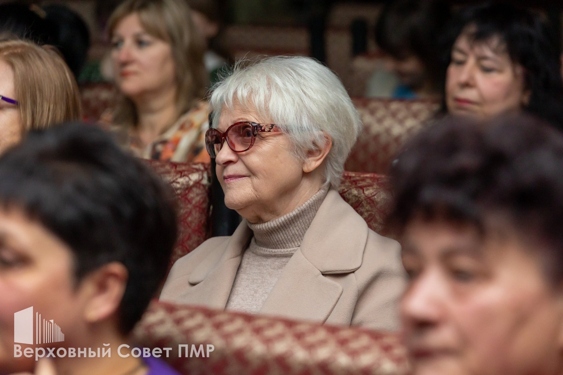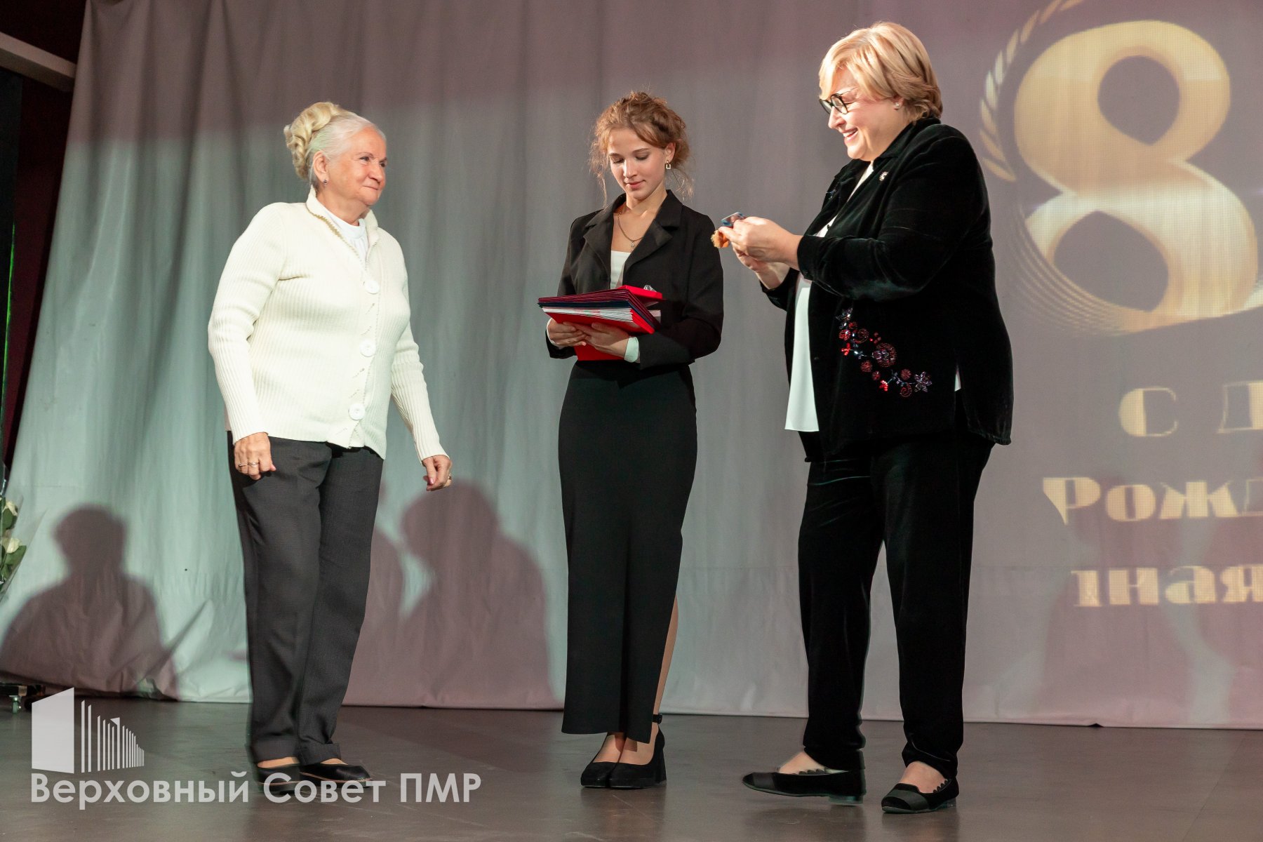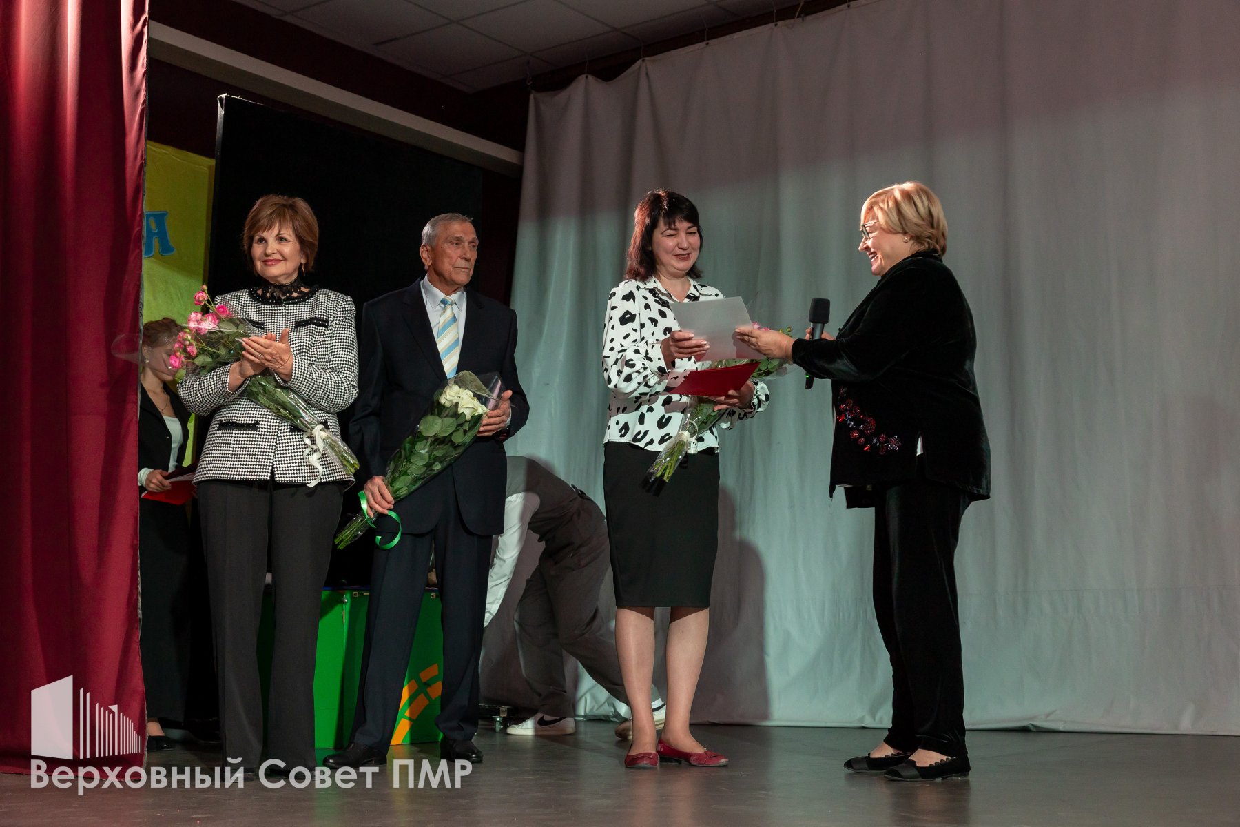 Вице-спикер вручила госнаграды педагогам, от Верховного Совета – грамоты. Учитель начальных классов Людмила Зинченко была награждена Орденом «Трудовая слава». Ее стаж работы в тираспольской 14-й школе – почти 38 лет, а общий педагогический стаж – 58 лет.