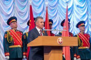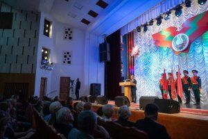 В преддверии Дня Великой Победы в большом зале Дворца Республики по неизменной традиции прошло торжественное собрание. Под звуки государственного гимна внесли Государственный флаг ПМР, Штандарт Президента ПМР и Знамя Победы. Память воинов, сражавшихся на полях Великой Отечественной войны, но так и не вернувшихся домой, почтили минутой молчания. После чего к присутствующим в зале ветеранам, депутатам, министрам, военнослужащим и общественникам обратился глава государства Вадим Красносельский.