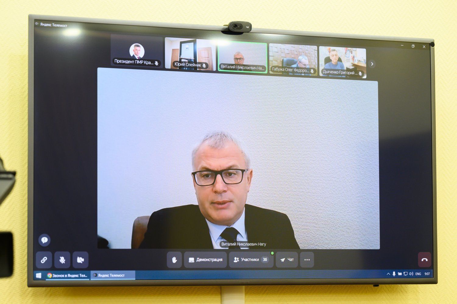 Председатель Верховного Совета Татьяна Залевская и члены парламентского Президиума приняли участие в традиционном для начала каждой недели селекторном совещании при Президенте ПМР.