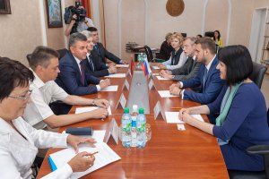 После посещения ЦИК ПМР, обсуждения там вопросов участия приднестровских россиян в выборах в Госдуму России, которые запланированы на 18 сентября, московские гости – в законодательном органе. Здесь состоялась встреча Председателя Верховного Совета Вадима Красносельского с членами делегации Госдумы Российской Федерации: депутатом от фракции «Единая Россия» Артемом Туровым, руководителем международного департамента Всероссийской политической партии «Единая Россия» Константином Петриченко, заместителем руководителя по работе с регионами ВПП «Единая Россия» Ириной Пуксовой. С приднестровской стороны в диалоге принял участие глава парламентской фракции «Обновление» Петр Пасат.
