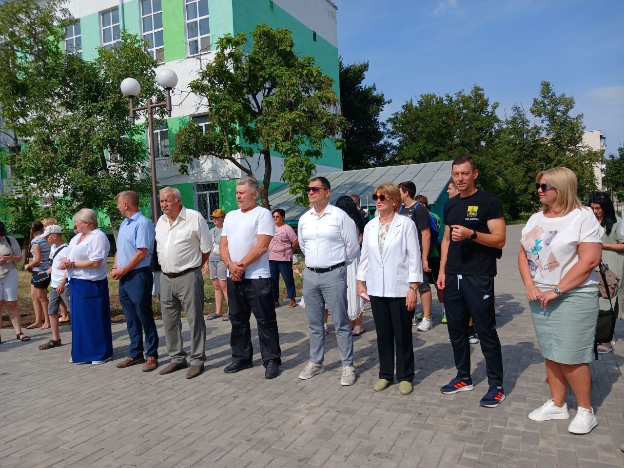 На торжественном открытии в праздничной обстановке перерезали красную ленту, символизируя начало работы нового спортивного комплекса. На нем есть площадки для занятий волейболом и баскетболом, поле для мини-футбола, зона для воркаута, беговые дорожки, столы для настольного тенниса и прыжковая яма с песком, территория замощена плиткой. Есть дополнительная инфраструктура: освещение и питьевые фонтанчики. Для зрителей предусмотрены трибуны, откуда удобно наблюдать за спортивными состязаниями. Наличие такого современного спортивного комплекса радом со школой позволит значительно расширить возможности для учебного процесса. А ученики смогут улучшать свою физподготовку не только во время уроков, но и после занятий, и в выходные. Приходить сюда смогут жители всего микрорайона «Ленинский» вне зависимости от возраста. На праздник сегодня пришли дошколята из соседнего детского сада.