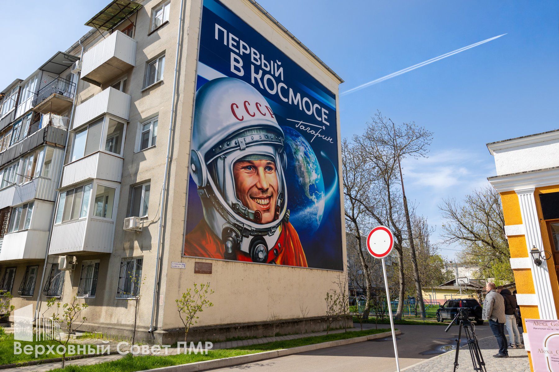 К 60-летию первого полета в космос на бульваре Гагарина в 2021 году открыли 11-метровый баннер с изображением космического первопроходца. На фасаде дома №71 по улице Свердлова теперь красуется такой же, вновь напечатанный. За 5 лет изображение выцвело. Свежий вид ему вернули по обращению председателя Республиканской партии «Обновление» Галины Антюфеевой.