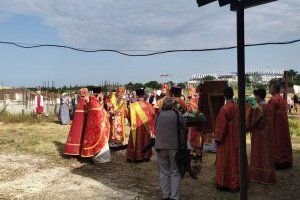 По окончании литургии прошла торжественная закладка храма. Священники положили освященные камни в основание. Строительные работы начнутся на этой неделе.