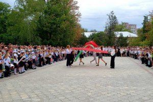 Для школьников подготовили яркую концертную программу – песни, танцы, флаг-шоу. Ученикам 1 и 11 класса выпала честь дать первый звонок. Он дал начало новому учебному году и первому уроку – уроку Мира.