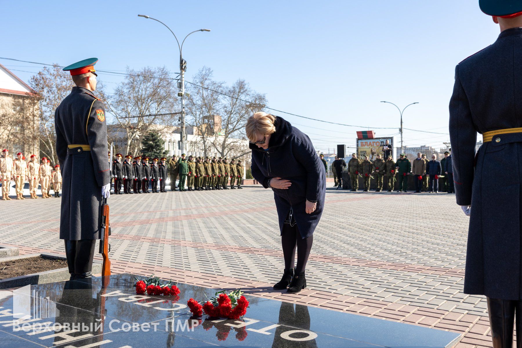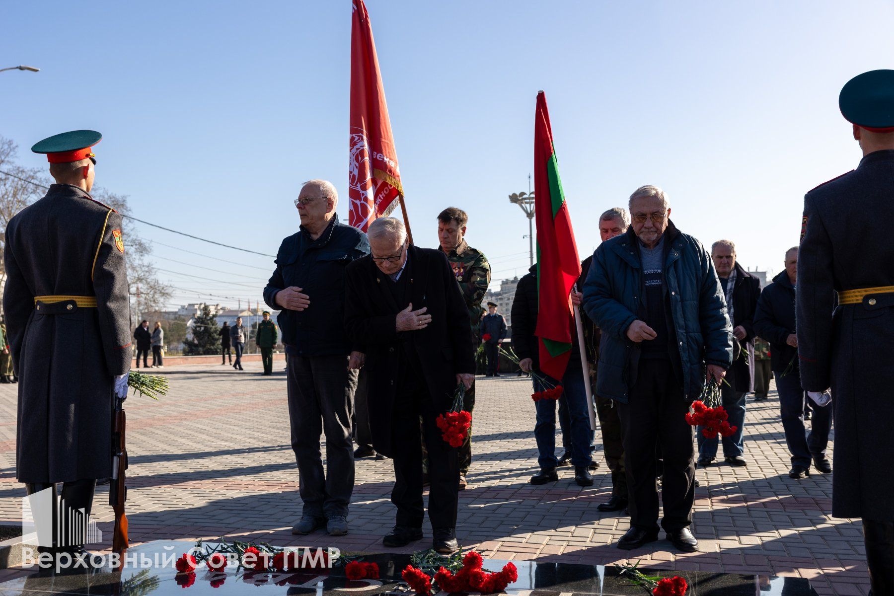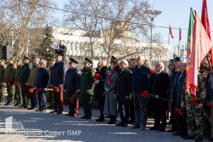 Представители органов госвласти и управления почтили минутой молчания память всех защитников Приднестровья, павших за свободу и независимость своего Отечества. Депутаты вместе с общественниками и неравнодушными тираспольчанами возложили цветы к Вечному огню и к памятным плитам с именами защитников ПМР.