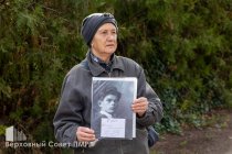 На памятный митинг пришла и Лариса Романовна, которой совсем скоро исполнится 90 лет. Ее семью тоже не обошли стороной репрессии. Вице-спикеру парламента Галине Антюфеевой она передала письмо для Президента ПМР.