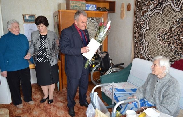 Сегодня Агния Павловна практически не выходит из дома, за ней ухаживают родные. Поздравляя именинницу с замечательным юбилеем, гости вручили ей цветы и подарки.