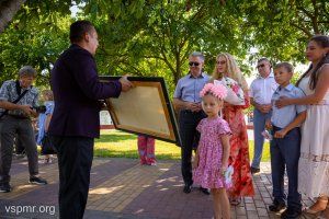 На сценической площадке Екатерининского парка сегодня поздравили пары, прожившие вместе долгие годы. Президент Вадим Красносельский с супругой Светланой лично вручили памятные подарки и грамоты семейным парам, которые на протяжении десятилетий сохранили преданность и любовь в своих семьях. А Россотрудничество и Союз русских общин Приднестровья наградили Вадима и Светлану Красносельских общественной медалью «За любовь и верность».