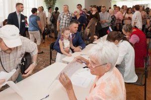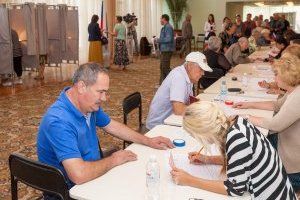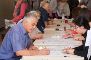 18 сентября. 10 часов утра. Во Дворце Республики многолюдно. Сюда на избирательный участок №8205 идут жители столицы, для того, чтобы отдать голос за кандидатов в депутаты Государственной Думы РФ. На стенде перечень партий, претендующих на место в парламенте России, фото и биографии кандидатов. Но люди идут голосовать уже определившись – кто из россиян, на их взгляд, достоин представлять интересы Приднестровья в законодательном органе России. Приднестровцы идут голосовать семьями, в приподнятом настроении.