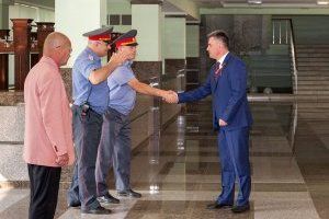 В фойе Дворца Республики образовалась большая очередь. Утром сюда пришли отдать голос депутаты Верховного Совета, первый президент ПМР Игорь Смирнов с супругой. Вместе с семьей на избирательный участок пришел и глава законодательного органа республики Вадим Красносельский: «Настроение у меня самое радостное. Хотя погода пасмурная, синоптики обещали дождь, но в день выборов выглянуло солнышко. И это символично, так как весь приднестровский народ ждет хорошей погоды в отношениях с Россией. Российская Федерация – наш стратегический партнер. Мы видим свое будущее только с великой Россией. Большие очереди желающих проголосовать свидетельствуют не о том, что голосование плохо организовано, а о том, что у приднестровских россиян велико желание участвовать в политических процессах Российской Федерации. Нам не все равно как живет и развивается великое государство».