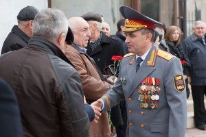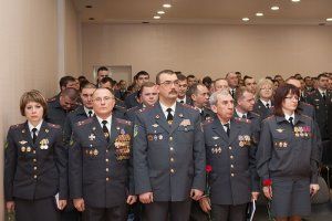 … Под звуки фанфар в зал для торжественного собрания вносят знамя этой важной для республики силовой структуры, демонстрируется видеофильм, отразивший исторические вехи становления приднестровской милиции, в честь 25-летнего юбилея МВД отличившимся сотрудникам ведомства президент вручает государственные награды. Особые почести в этот день – ветеранам правоохранительного ведомства. В их числе, кстати, и представители Верховного Совета – спикер парламента генерал-майор Вадим Красносельский, парламентарий полковник Олег Беляков, руководитель Аппарата Верховного Совета генерал-майор Сергей Белоус. «Весьма странно ощущать себя в статусе ветерана, но факт остается фактом – заметил, выступая перед участниками юбилейного торжественного собрания Сергей Белоус. – Спасибо, коллеги, за внимание, которое вы проявляете к ветеранам, за службу, которую вы ежедневно несете, обеспечивая мирный труд приднестровцев, их защиту, общественный порядок. Это нелегкий, но благородный труд».