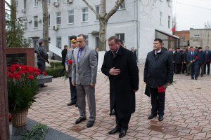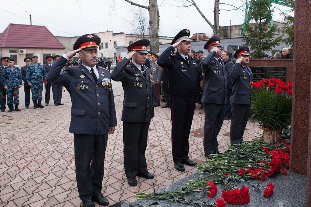 Торжественные мероприятия, посвященные 25-й годовщине образования МВД, по традиции начались во дворе ведомства, где руководство республики, приглашенные возложили цветы к стеле, возведенной в память о более четырех десятках милиционеров, погибших при исполнении служебного долга.