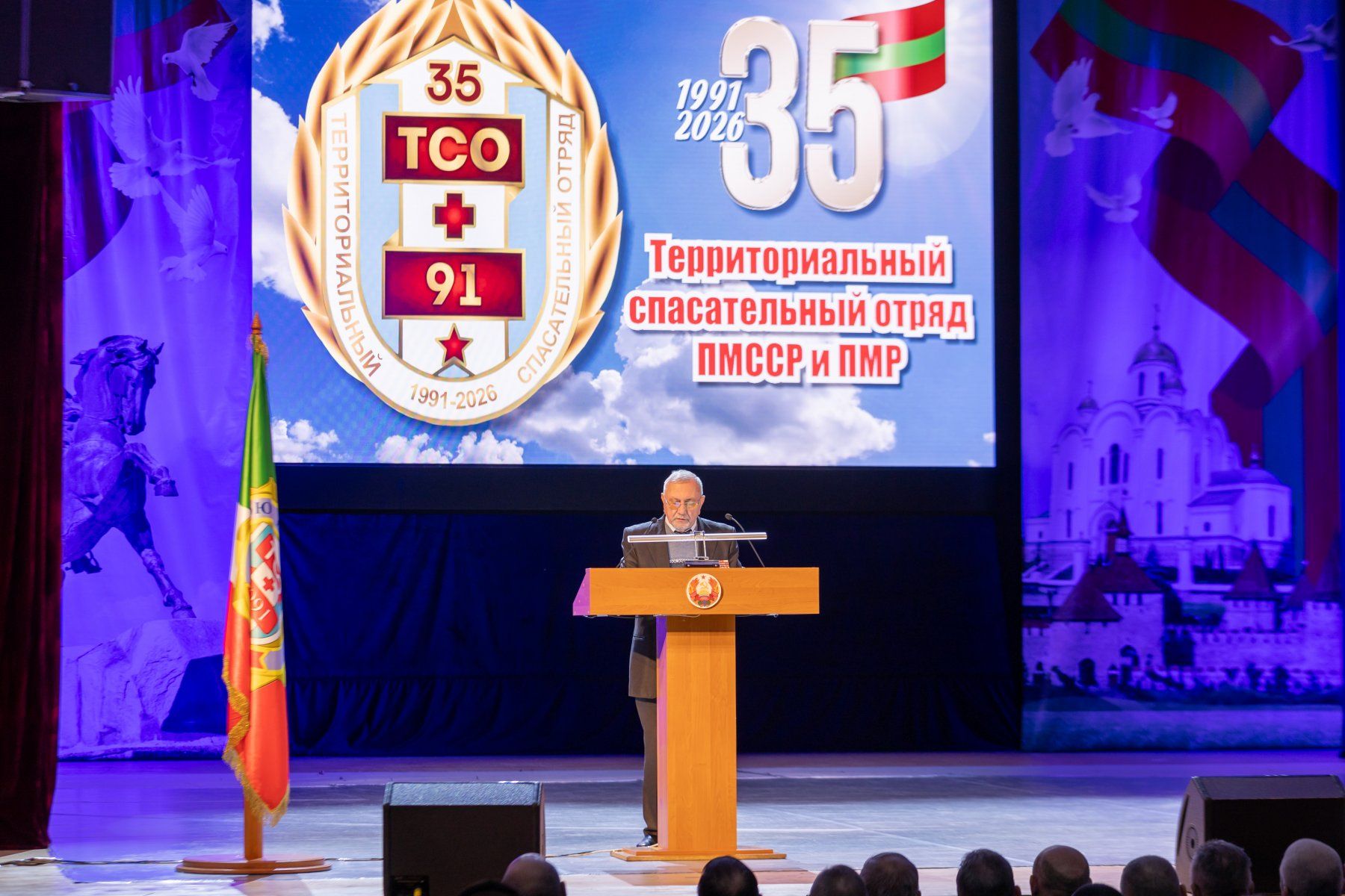 «36-й год живет наше государство, в тяжелейших, неимоверных условиях. И я как бывший руководитель промышленников не представляю, как сейчас приходится руководить коллективом и организовывать производство. И я отдаю должное депутатам Тираспольского горисполкома, которые приняли решение создать ТСО для защиты граждан, их жизни. А жизнь – это и родной язык, и история, и устои, по которым жило и будет жить наше государство», – обратился к ветеранам ТСО первый Президент ПМР, глава Совещательного собрания первых приднестровских депутатов при Председателе Верховного Совета ПМР Игорь Смирнов.