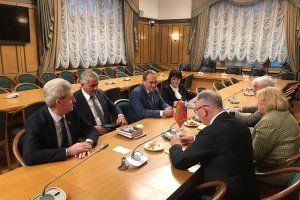 В рамках рабочего визита в Москву Председатель Верховного Совета Александр Коршунов и парламентарии Петр Пасат и Сергей Чебан провели рабочие встречи с Председателем комитета ГД по делам Содружества Независимых Государств, евразийской интеграции и связям с соотечественниками Леонидом Калашниковым, депутатом Госдумы Еленой Драпеко. Диалог также состоялся с депутатами, представляющими в российском парламенте и интересы приднестровцев, – Евгением Примаковым, Александром Ярошуком, Сергеем Чижовым и Артемом Туровым.