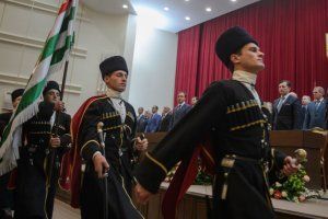 Торжественное мероприятие продолжилось выступлением глав делегаций, прибывших в Абхазию для участия в церемонии. В предоставленном слове Председатель Верховного Совета ПМР Александр Коршунов поздравил Рауля Хаджимба с официальным вступлением в должность и зачитал поздравительный адрес Президента ПМР Вадима Красносельского.