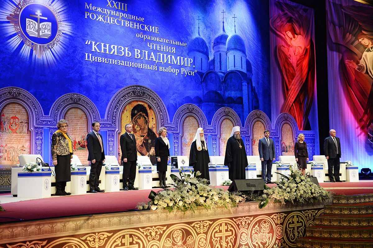 21 января в Государственном Кремлевском дворце состоялось открытие XXIII Международных Рождественских образовательных чтений. Тема чтений – «Князь Владимир. Цивилизационный выбор Руси» – приурочена к церковному и государственному празднованию в текущем году 1000-летия со дня рождения святого равноапостольного великого князя Владимира. Церемонию открытия и пленарное заседание возглавил Святейший Патриарх Московский и всея Руси Кирилл. В рамках чтений работа проходит по нескольким направлениям.