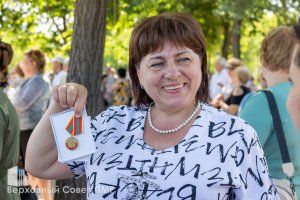 После смотра выставки на сцене Екатерининского парка состоялось чествование лучших представителей отрасли легкой промышленности. Государственные награды сотрудникам фабрик швейной и обувной промышленности вручил первый заместитель председателя Правительства ПМР, министр экономического развития Сергей Оболоник. Еще 10 лет назад Сергей Оболоник работал на «Тиротексе», а с 2016 года возглавляет министерство, которое курирует и поддерживает предприятия, в том числе легкой промышленности. Совместно с Верховным Советом принимаются законы о мерах поддержки текстильной и швейной отраслей. Обращаясь к работникам предприятий легкой промышленности, Сергей Оболоник поблагодарил их за работу в нелегких условиях энергокризиса.