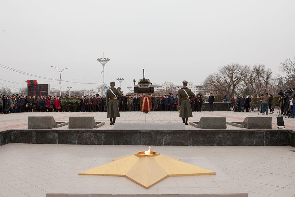 20 февраля. 8:30. Мемориал Славы г. Тирасполя. Здесь начался торжественный митинг, посвященный Дню защитника Отечества. В нем приняли участие парламентарии республики во главе с вице-спикером Александром Щербой.
