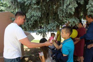 Яков Галак поздравил детей с началом лета, пожелав им радости, здоровья, добра, мира, хороших каникул, вручил мороженое ребятам и их родителям.