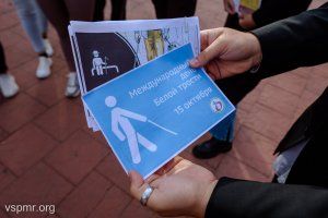 «Сегодня мы напоминаем тираспольчанам о дне белой трости, о том, что тут живут такие же люди, как и все. Да, они слабовидящие либо совсем незрячие, даем такие памятки, где написано, как им помочь, как им подсказать, что не всегда есть звуковое обозначение, что сейчас горит зеленый сигнал светофора. Как подсказать правильно, как помочь, как не тянуть этого человека, как не навредить этому человеку», - пояснил активист партии «Обновление» Александр Толоченко.
