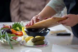 Каждая из шести конкурсанток пришла в этот день со своей кулинарной доской и ножом, который удобно ложится в руку. Перед тем, как был дан старт, помощники объяснили, что и где расположено на столе. Ведь незрячие хозяйки ориентируются наощупь. Они разложили продукты так, как им удобно и приступили. На приготовление было отведено полчаса. Все это время члены жюри следили за тем, как проходит нарезка салатов.