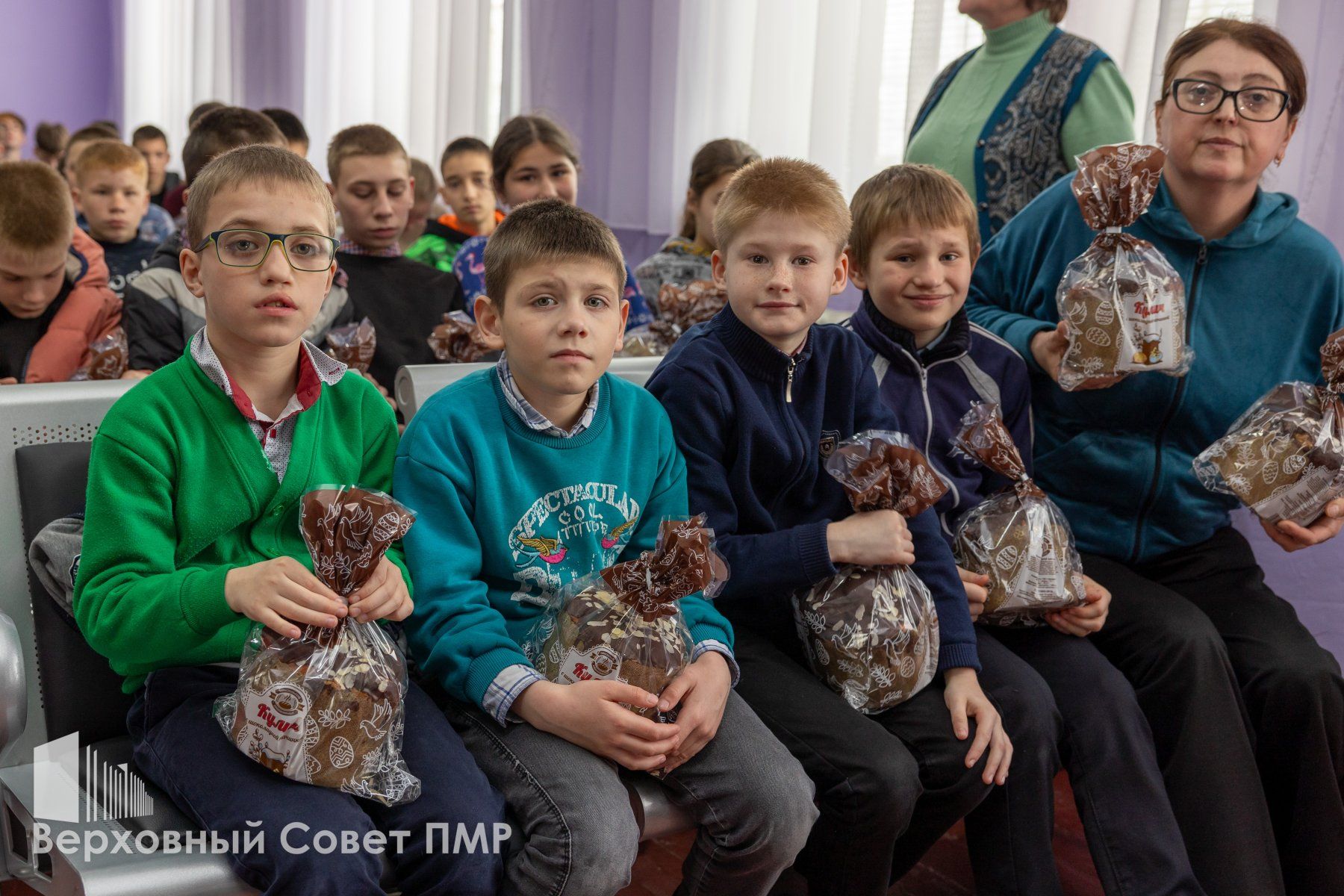 В канун Пасхи Христовой Председатель Верховного Совета ПМР Татьяна Залевская посетила воспитанников школы-интерната села Глиное Слободзейского района. Здесь учатся и живут 115 детей. В православный праздник Благовещение спикер парламента подарила каждому ребенку пасхальный кулич. Школа-интернат входит в округ Татьяны Залевской, депутата по округу №19 «Краснянский».