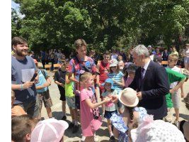 В школе №16 г. Бендеры сегодня открылся детский лагерь. В честь этого события и празднования Дня защиты детей на территории школы провели конкурс рисунка. Все участники получили подарки от имени депутатов по округу: Председателя Верховного Совета Александра Коршунова и депутатов Бендерского горсовета.