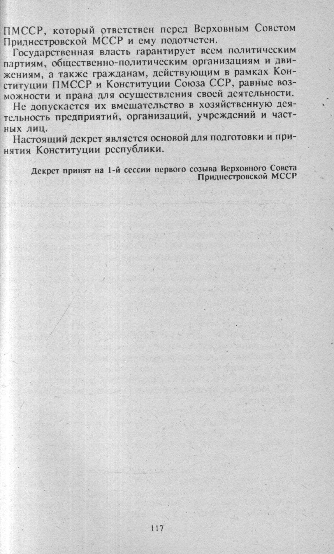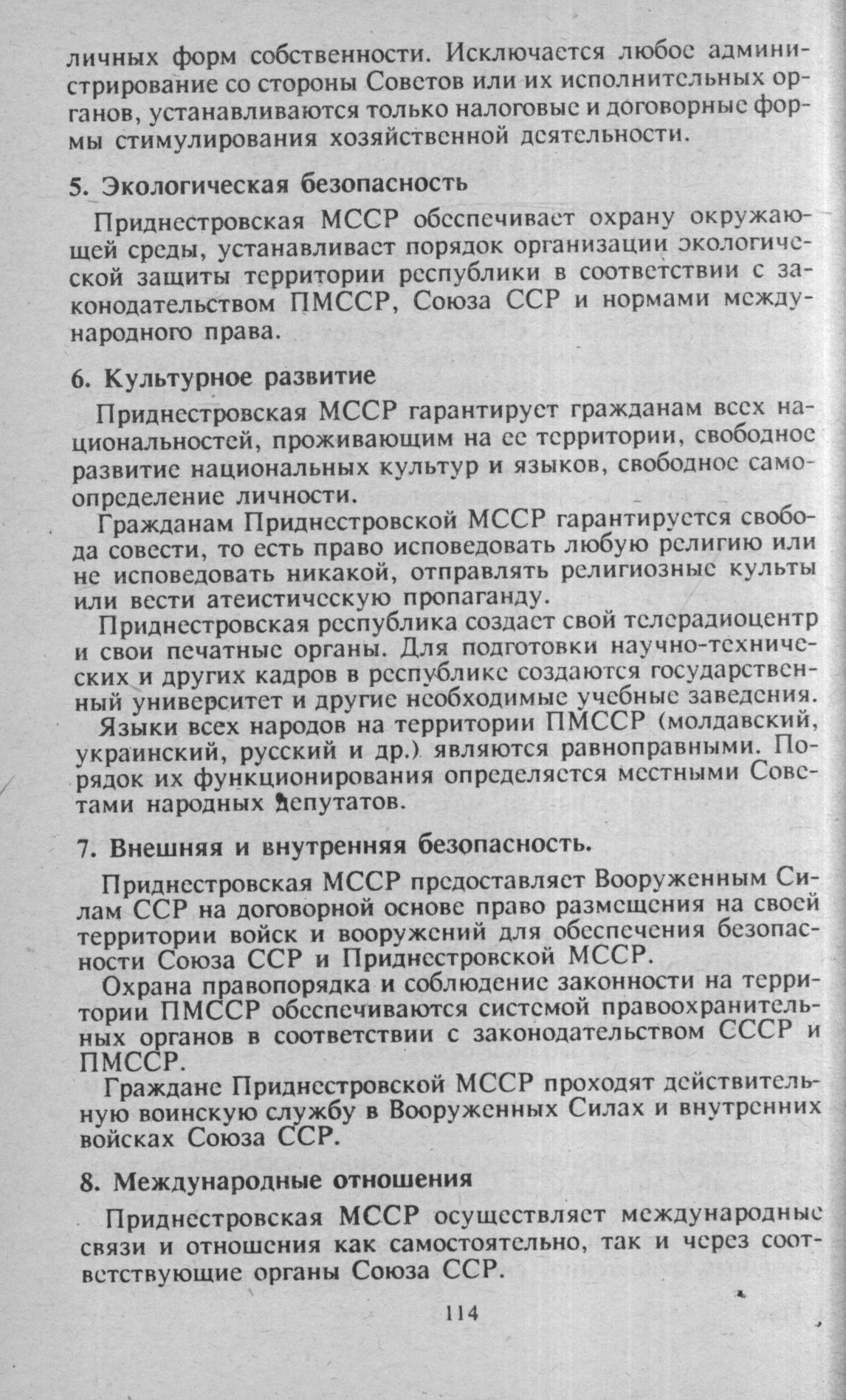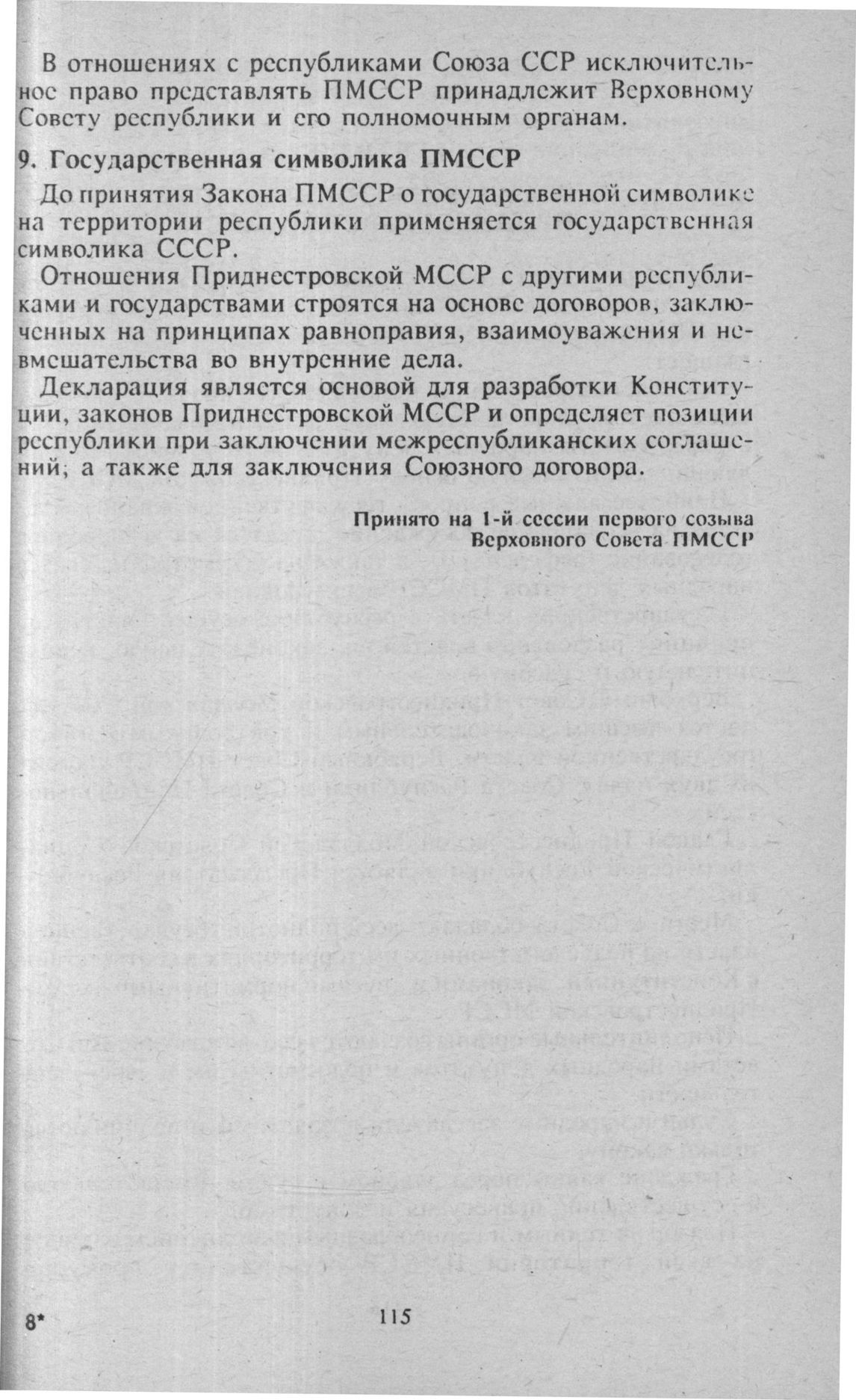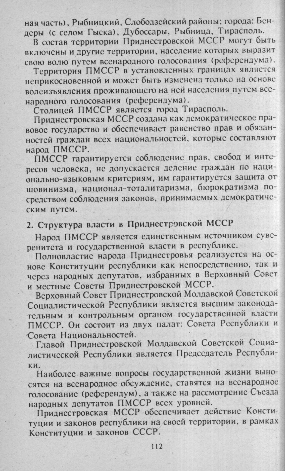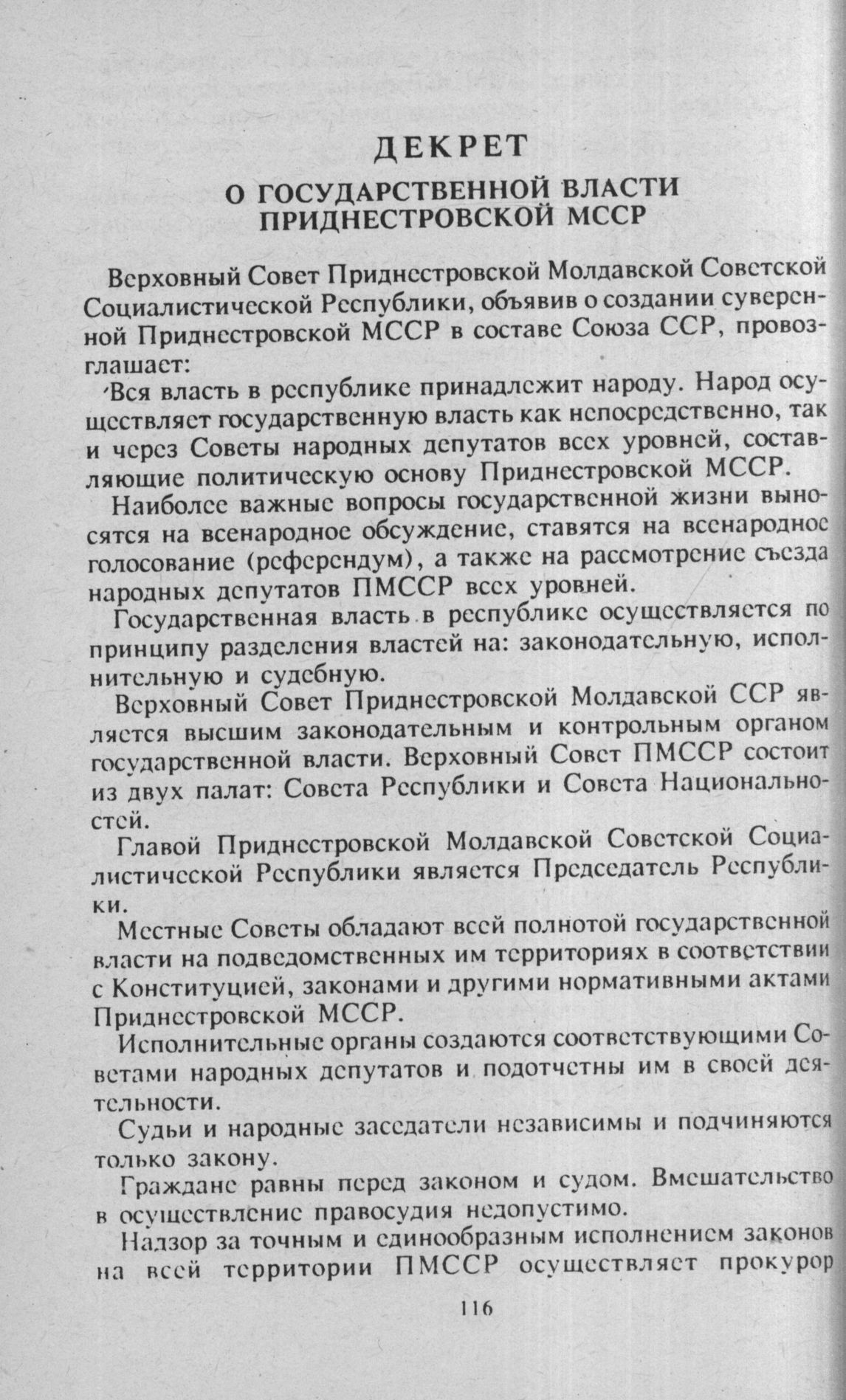 Приднестровская Молдавская Советская Социалистическая Республика есть суверенное государство в составе Союза ССР, суверенитет ПМССР – естественное и необходимое условие существования ее государственности».