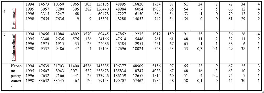 Таблица 4. Производство и продуктивность овощных культур в Приднестровье за 1991-1998 годы