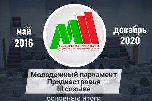 С мая 2016 по декабрь 2020 года Молодёжный парламент ПМР организовал и принял участие почти в 100 общественных мероприятиях: спортивных, творческих и научных. Форумы, слеты и круглые столы, республиканские и международные. Молодежный парламент формирует для республики молодой кадровый резерв. В ближайшее время решится вопрос о IV созыве Молодежного парламента при Верховном Совете ПМР.