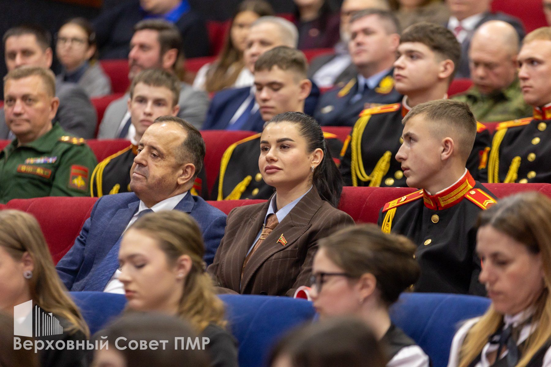 В зрительном зале – школьники, студенты, суворовцы, кадеты и курсанты. Ожившую летопись истории нашего края смотрели руководство Верховного Совета – спикер Татьяна Залевская и вице-спикеры Галина Антюфеева и Александр Коршунов. А также вице-премьер – Виталий Нягу.