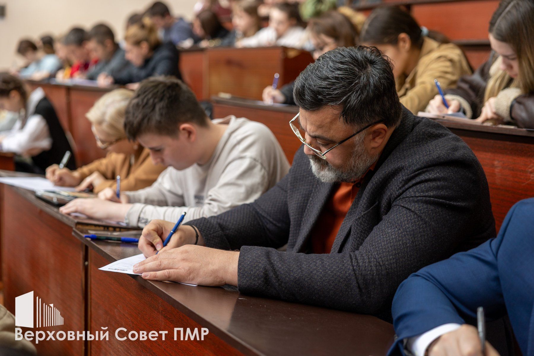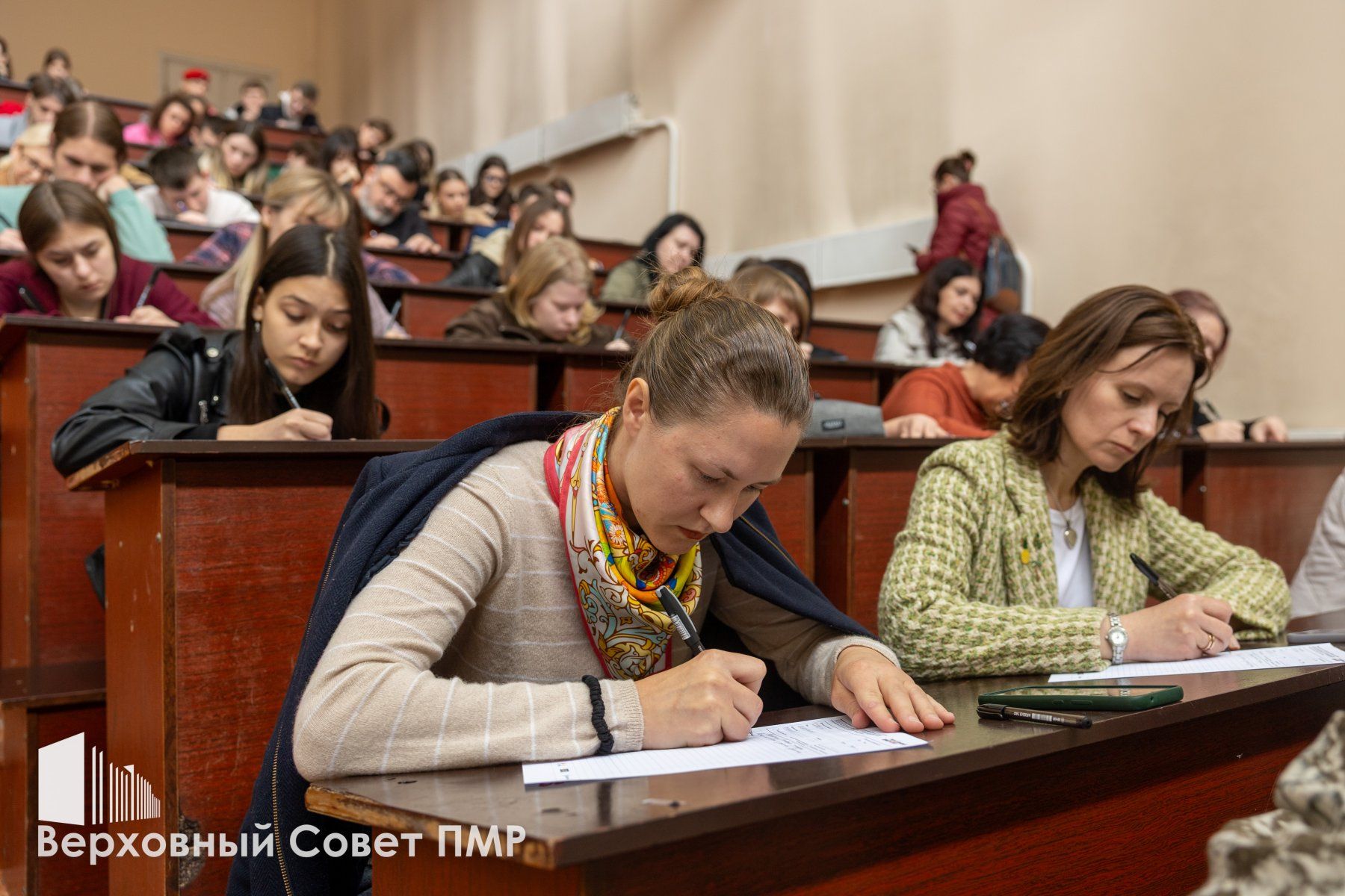 «Сегодня я окунулся в школьные годы, трепетные. Когда ты пишешь диктант во взрослом возрасте, это другие ощущения. Написание просто было интересным. В последний раз я был в ПГУ в студенческие годы, поэтому это вдвойне приятно. В целом, эта акция говорит о том, что молодежи это важно, интересно и нужно. И это уважение к языку, к письменности и к формированию в обществе определенной значимости культуры написания, культуры речи», – отметил председатель Тираспольского горсовета Андрей Волкович.