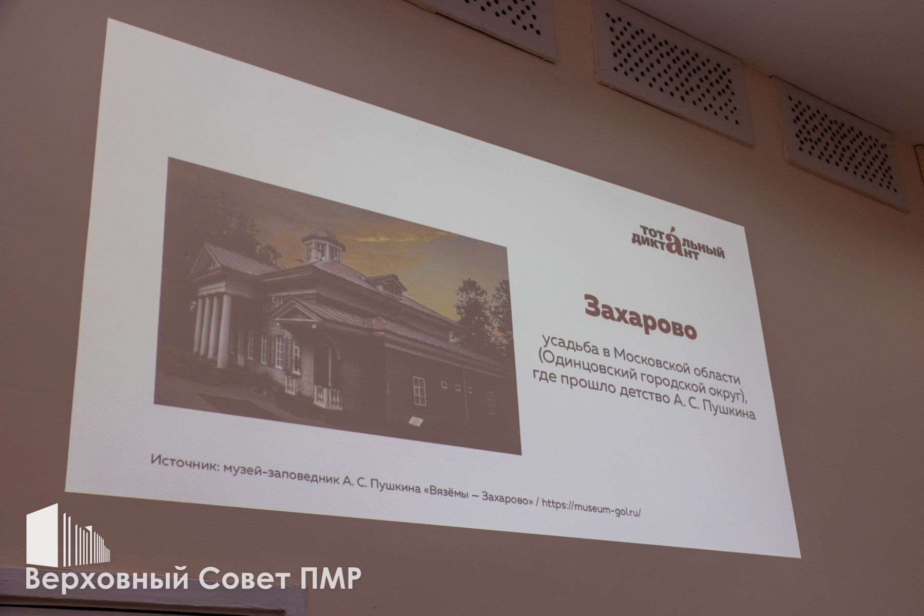 В Приднестровье акция проходит при поддержке фонда «Будущее Приднестровья» и партии «Обновление», начиная с 2018 года. По республике было организовано 8 площадок от Каменки до Днестровска. В Тирасполе диктант писали в Приднестровском госуниверситете. Вместе со школьниками, студентами и другими любителями русского языка в акции участвовали депутаты Верховного Совета Виталий Калин и Елена Соболева.